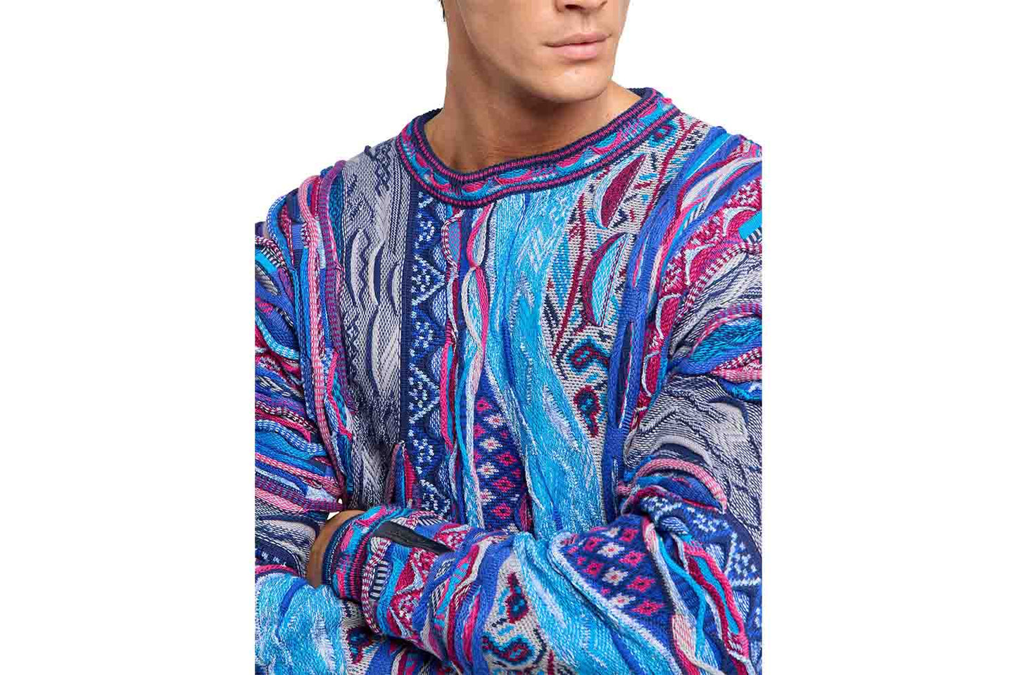 Dieser Rundhals Pullover ist durch sein auffälliges Strickmuster ein echtes Highlight. Durch die Kombination des Musters und die Farbauswahl erhält das Kleidungsstück eine markante und stylische Note. Hier zählt das Motto anziehen, auffallen und wohlfühlen.